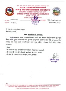 पत्रको प्रतिलिपि प्रधानमन्त्री तथा मन्त्रिपरिषद्को कार्यालय, प्रदेश १ का मुख्यमन्त्री तथा मन्त्रिपरिषद्को कार्यालय, र वीपी कोइराला स्वास्थ्य विज्ञान प्रतिष्ठानलाई समेत पठाइएको छ।