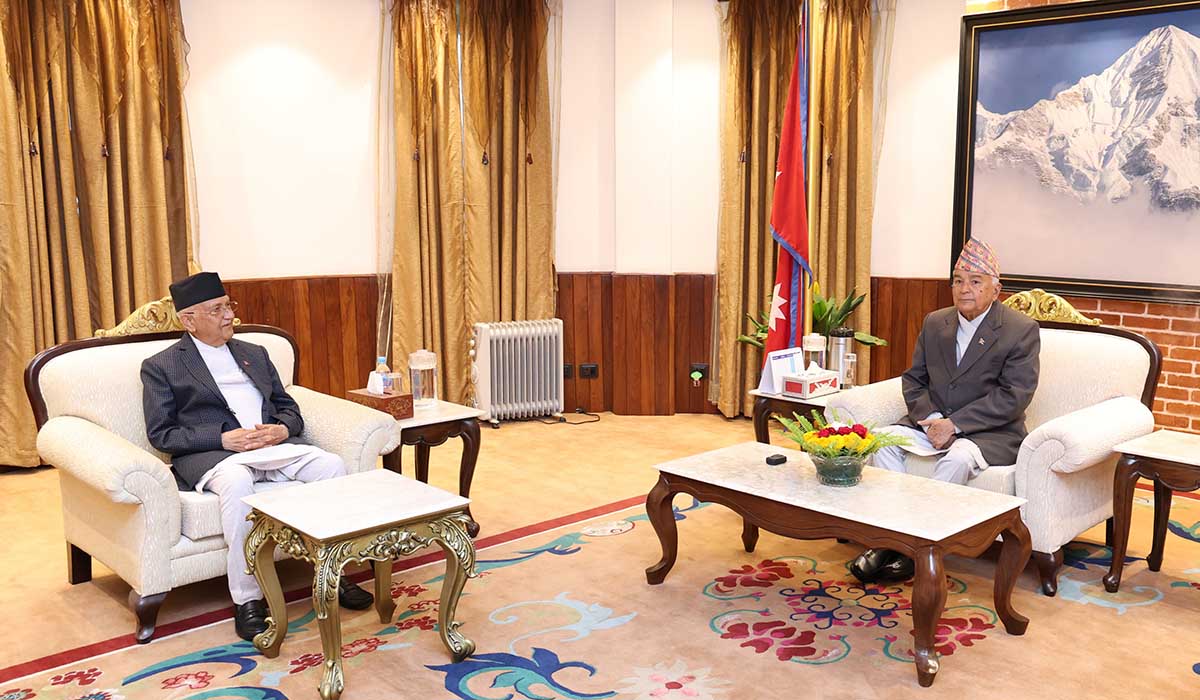 प्रधानमन्त्रीको निजी सचिवालयका अनुसार शनिबार दिउँसो राष्ट्रपति कार्यालय शीतल निवास पुगेर प्रधानमन्त्री ओलीले राष्ट्रपतिसँग भेट गर्नुभएको हो।