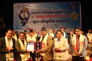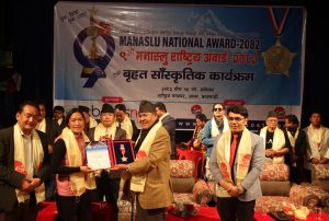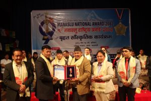 “एक विधा एक स्टार” ९औैं मनास्लु राष्ट्रिय अवार्ड – २०८२ मा विभिन्न क्षेत्रमा क्रियाशिल रहदै राष्ट्रलाई बिशेष योगदान पु¥याएका व्यक्तित्वहरुलाई अर्वाडद्वारा सम्मान गरिएको थियो ।