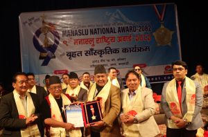 मनास्लु मिडिया प्रा.लि.द्वारा सञ्चालित “हरपल खबरको रफ्तार” मनास्लु पोष्टकोे आठौं बर्ष पुरा भएकोे अवसर पारेर बिभिन्न क्षेत्रमा महत्वपुर्ण योगदान पु¥याएका व्यक्ति एवं संस्थालाई सेवाको कदर स्वरुप “एक विधा एक स्टार” “९औं मनास्लु राष्ट्रिय अवार्ड – २०८२” बाट सम्मान गरिएको छ । राष्ट्रिय नाचघर जमलमा यहि पौष १९ गते शनिवार “९औैं मनास्लु राष्ट्रिय अवार्ड – २०८२” सम्पन्न भएको हो ।